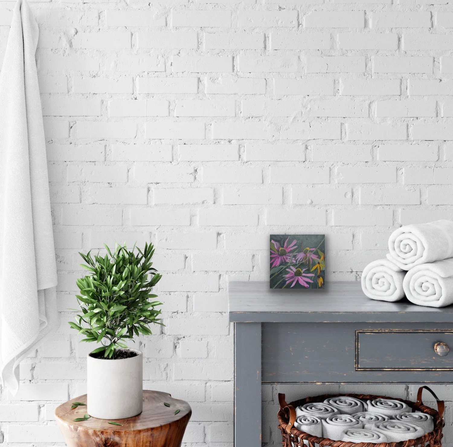 The 7/8 inch support makes this painting easy to show on a console, wall, or shelf as it adds a pop of color to any room.